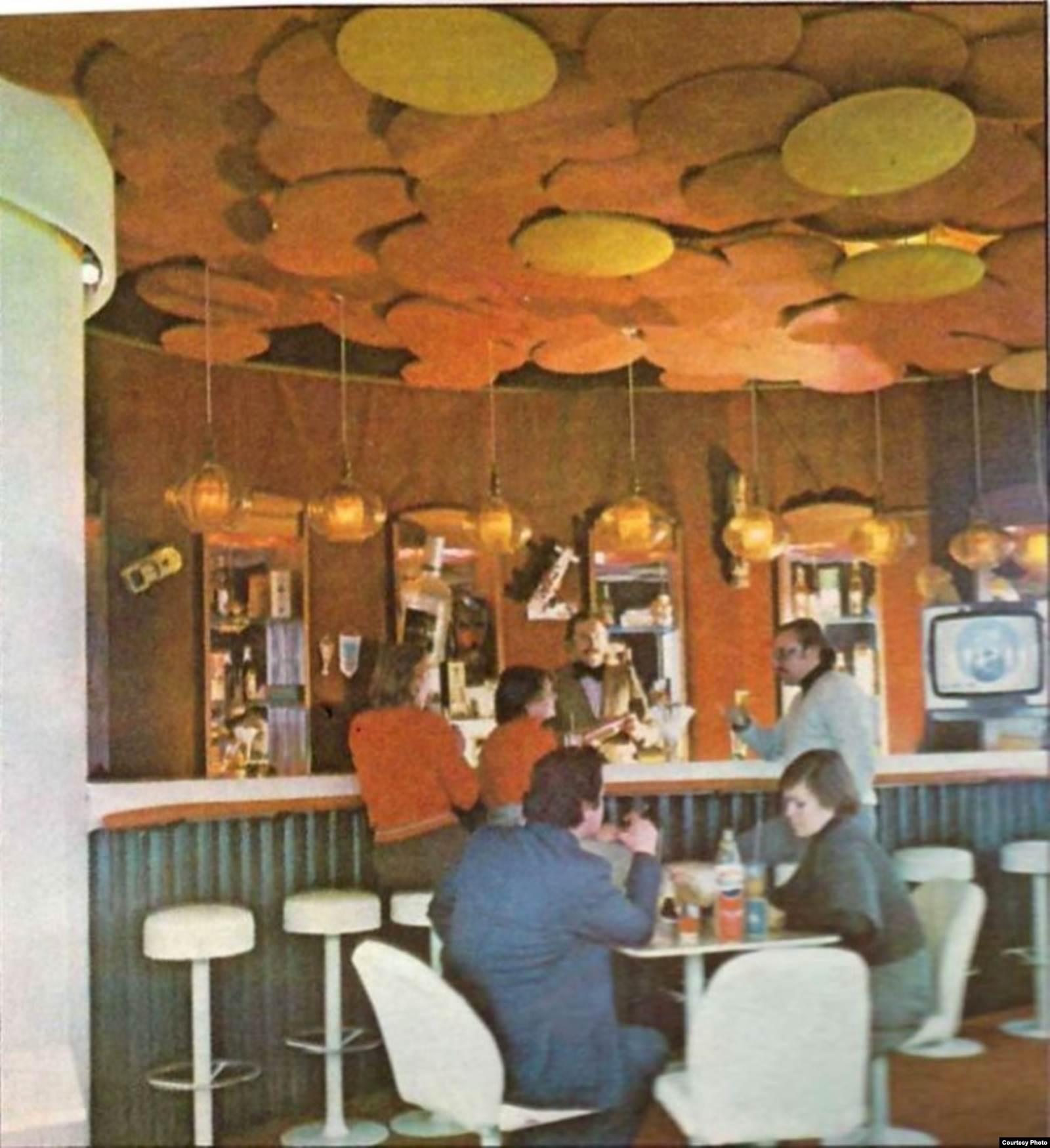 В послевоенные годы здание стояло без дела, пока в 1970-х не возникла задумка переоборудовать его в бар. Пресса тех лет приписывала инициативу председателю районного продторга Эдгарду Маркарянцу. Но непосредственно воплощением проекта в жизнь занималась его подчиненная Соня Гольденберг. К делу она подошла с душой: обсуждала проекты с архитекторами и художниками, контролировала ход ремонта, сама доплачивала рабочим.